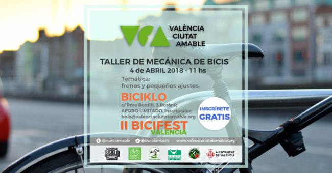 Taller de mecánica con CultBikes La tienda/taller de bicicletas Cultbikes School colabora con el proyecto #VlcCiutatAmable y el evento #IIBicifestValència impartiendo un taller de mecánica básica para bicicletas para todas las personas que puedan acercarse…
